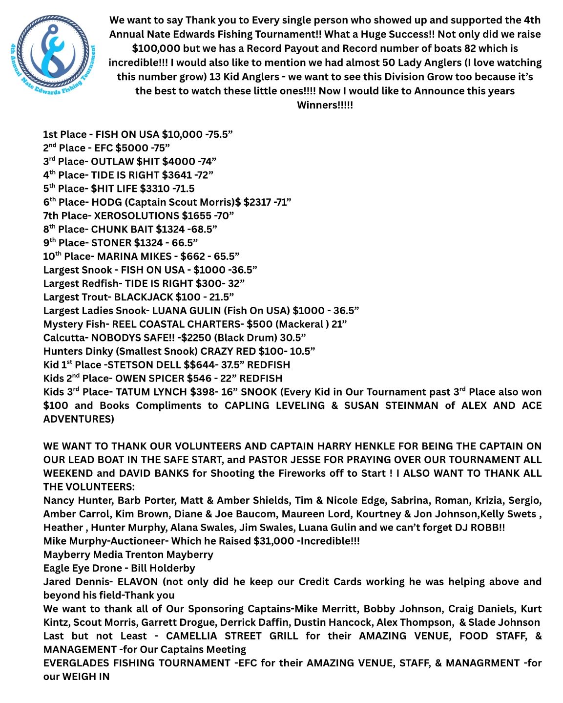 WINNERS OF THE 4th ANNUAL NATE EDWARDS FISHING TOURNAMENT 2025